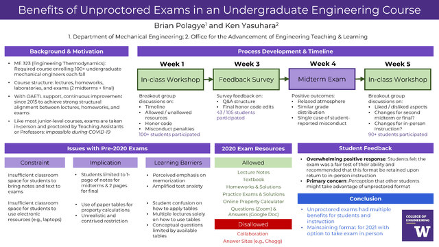 - By developing the exam honor code and rules as a class, providing students a forum for anonymous feedback, and revisiting exam process after the first midterm, we provided the students with agency to establish a set of equitable rules and make necessary adjustments.