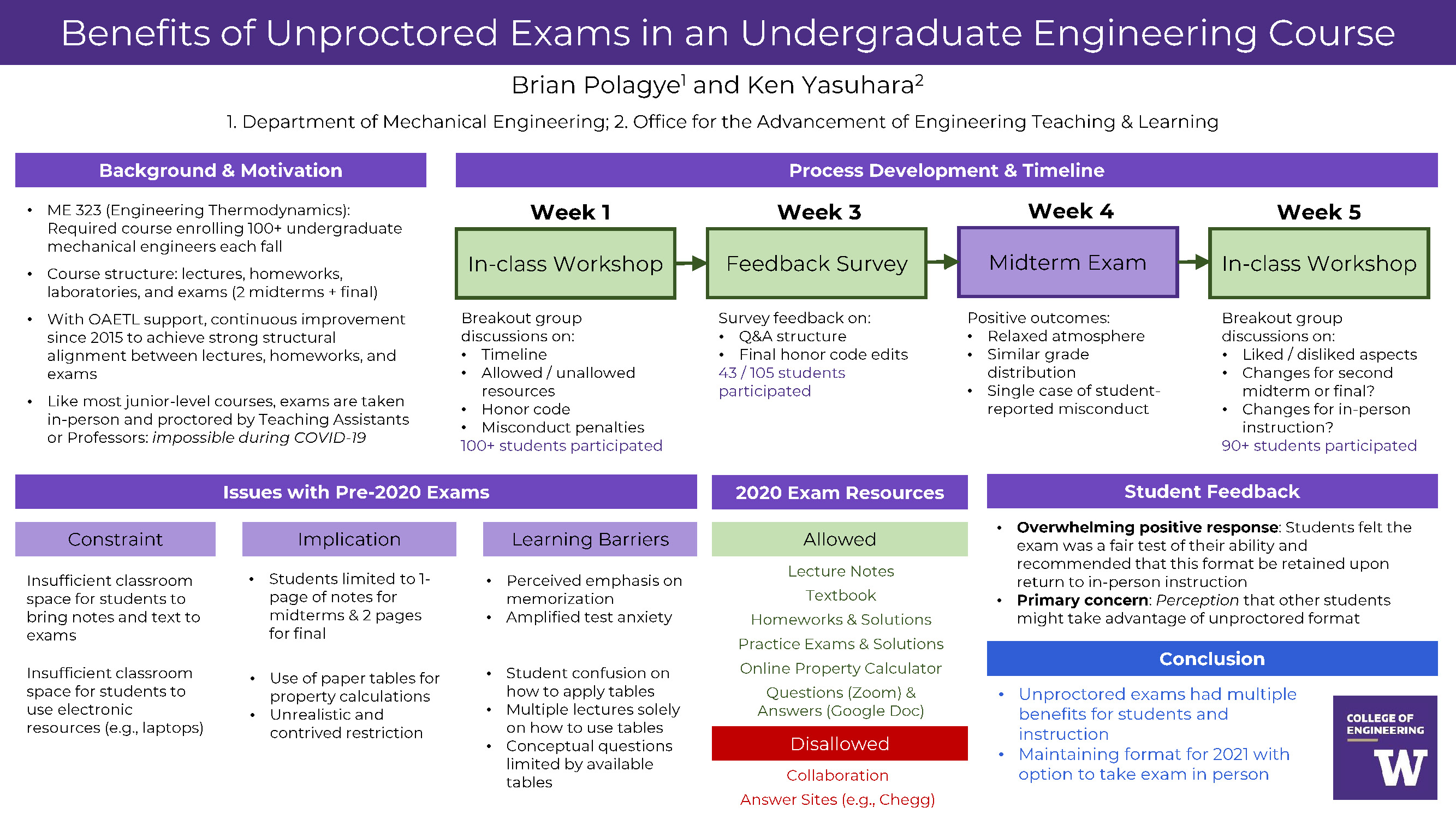 Benefits of Unproctored Exams in an Undergraduate Engineering CourseCloseImagePreviewPreview image “Benefits of Unproctored Exams in an Undergraduate Engineering Course”Benefits of Unproctored Exams in an Undergraduate Engineering CourseUploaded April, 2021Tags listtagsremote learningcommunity-building