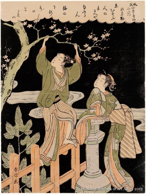 Plum Blossoms at the Edge of the Water, from "Fashionable Versions of Poetry Immortals in the Four Seasons", Suzuki Harunobu.