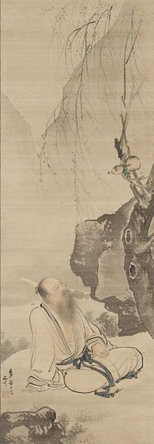 Tao Yuan Ming sitting under a willow is a painting by Tani Buncho. Tao Yuan Ming was a Chinese poet and politician. He had a nickname called Mr.Five Willows for he planted five willows in front of his house. He was disgusted at the corruption and the infighting of the Jin court, so he resigned his post. As he put it, he would not swallow one's pride in exchange for a meager existence. Tao Yuanming spent much of his life in reclusion, living in the countryside, farming, reading, drinking wine, receiving the occasional guest, and writing poems in which he often reflected on the pleasures and difficulties of life, as well as his decision to withdraw from politics. As chill as in the painting, he’s daily life included watching cherry blossom, willows swinging in the wind, gazed leisurely at distant mountains, and returned home with a flock of birds. He could find insights and wisdom in every little thing. Tani Buncho definitely admired his direct and simple lifestyle, and his courage to stay true to himself and not just drift along with people and things he didn’t appreciated.