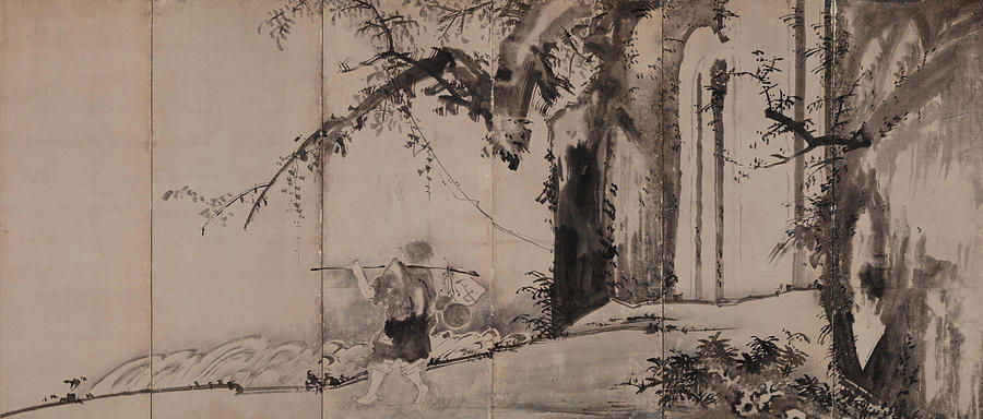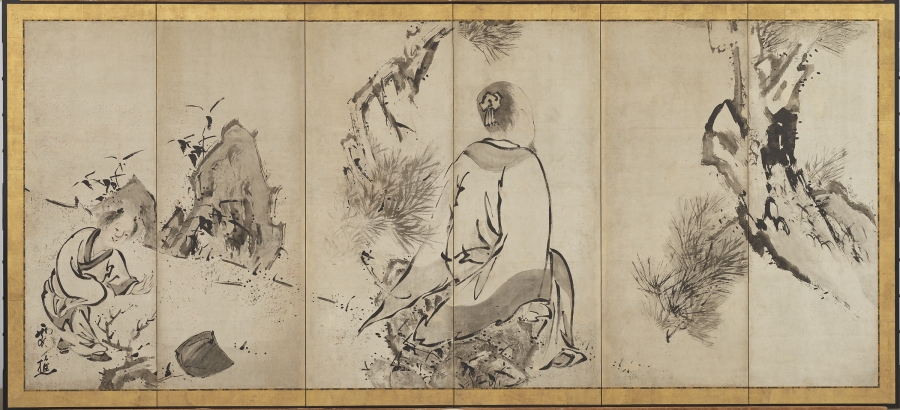 UploadedIke no Taiga, The Poet Su Shi and Meng Jia loses his hat, ca.1760-61, Pair of six-panel folding screens, ink and light color on paper, Image (each): 61 3/16 in. × 11 ft. 9 9/16 in.