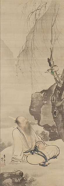 Uploaded UploadedTani Buncho, Tao Yuan Ming Sitting Under a Willow Tree, 1812, ink on paper, 38 1/2 × 13 5/8 inches