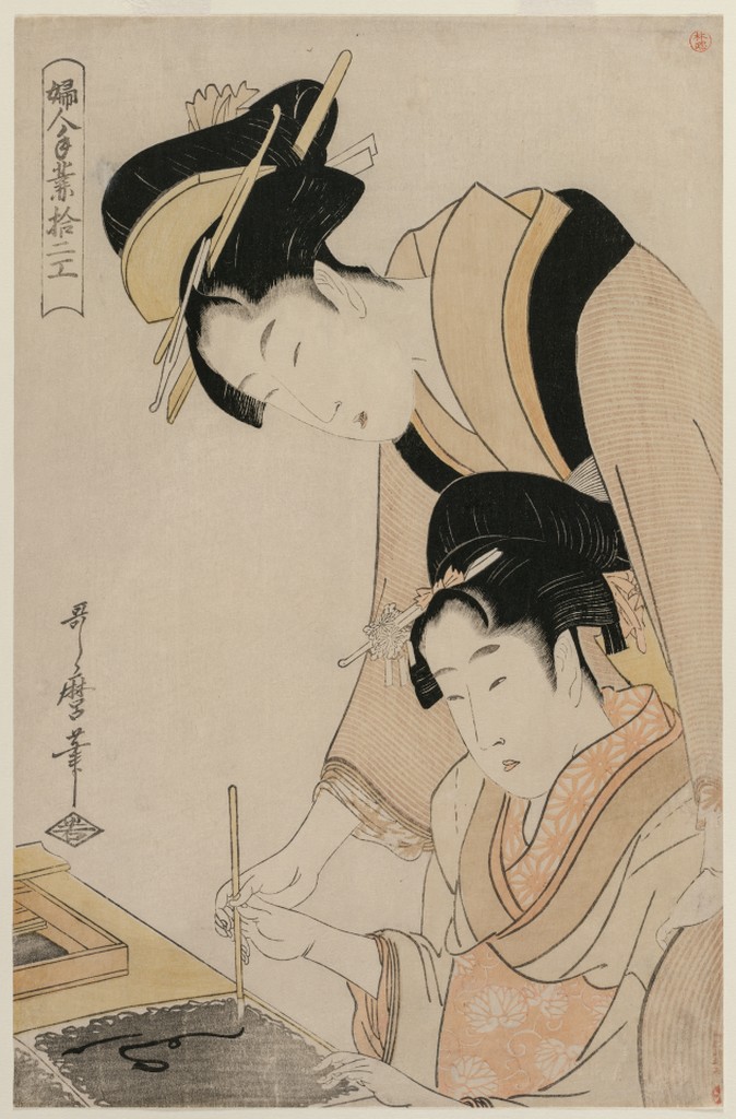 UploadedMother Teaching her Daughter Calligraphy, from the series, "Twelve Occupations of Women, Kitagawa Utamaro"