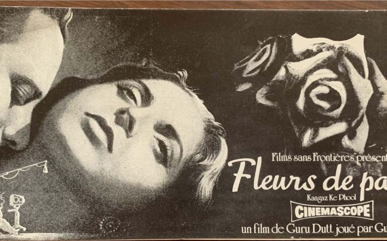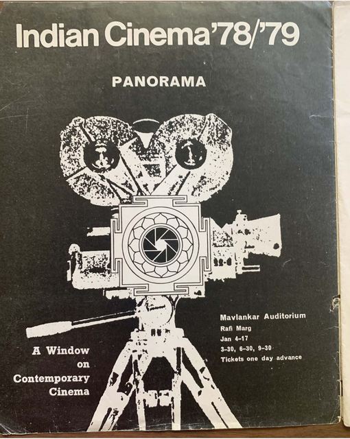 Cover Image: Page from 7th International Film Festival of India brochure for 1978/79, announcing the Indian Panorama section of the festival that curated offerings from India's regional cinemas. Background is a detail from a pass for a screening of Guru Dutt's Kaagaz Ke Phool (1959) in Nantes, France in the 1980s.