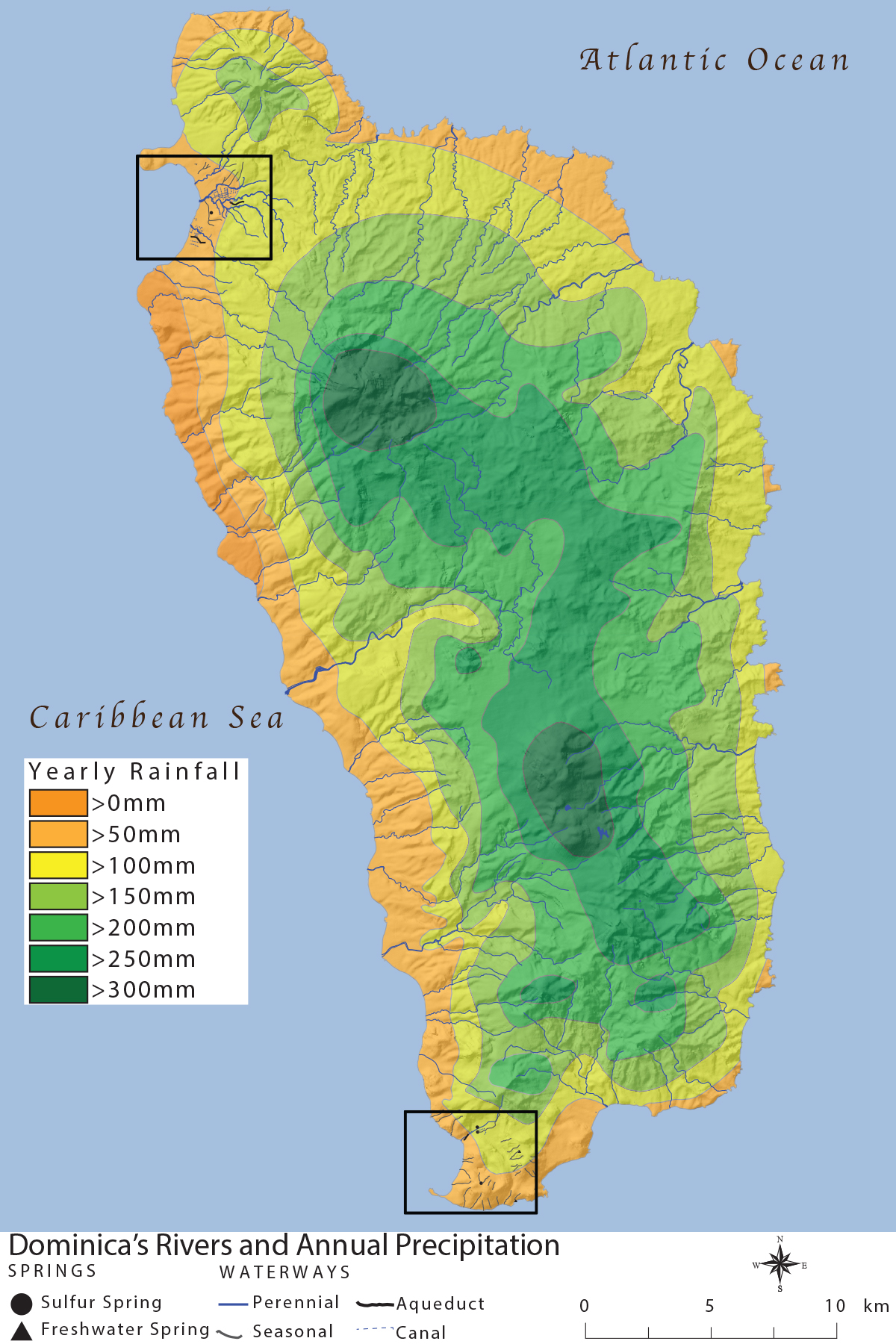 UploadedMap 1.1, Dominica's Rivers and Precipitation
